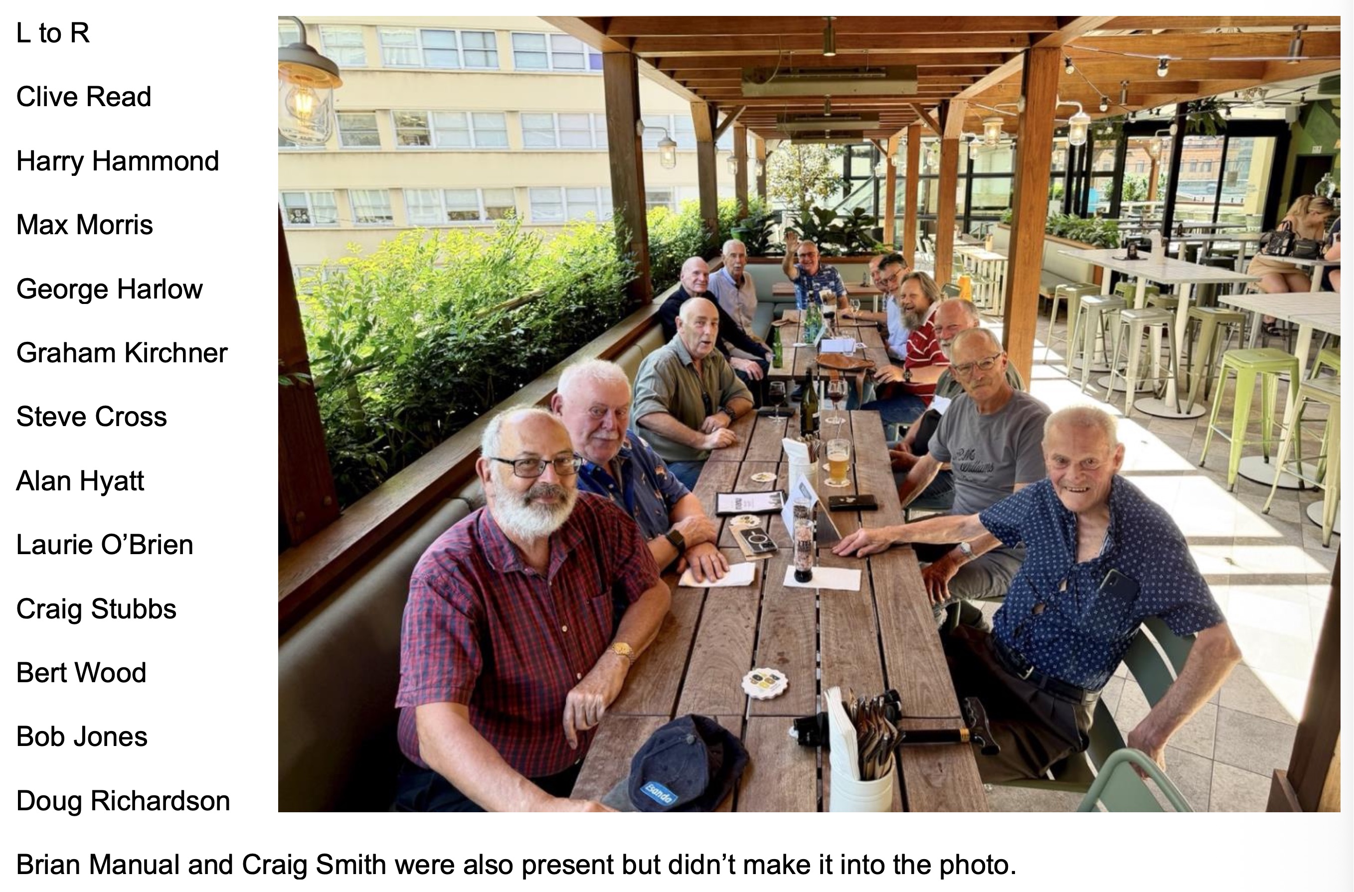 Co-Ordinator Bob Jones welcomed 14 to the Annual Esanda Christmas Luncheon which was held at the Aurora Rooftop Hotel in Sydney on 27th November. A great time was held by all with much reminiscing of good times had in Esanda back in the 80’s and 90’s.